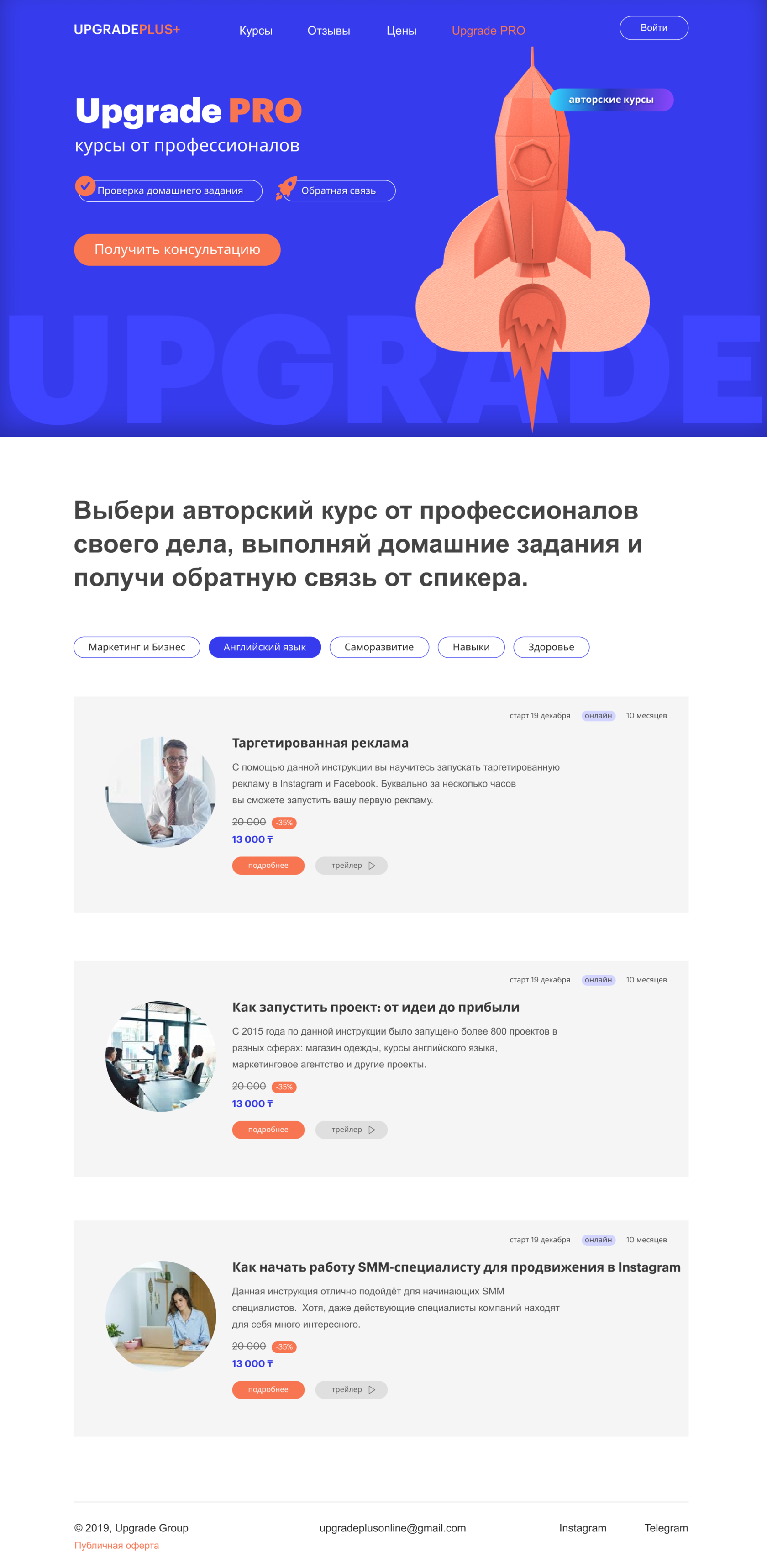 Дизайн и верстка для нового раздела сайта Upgrade Plus